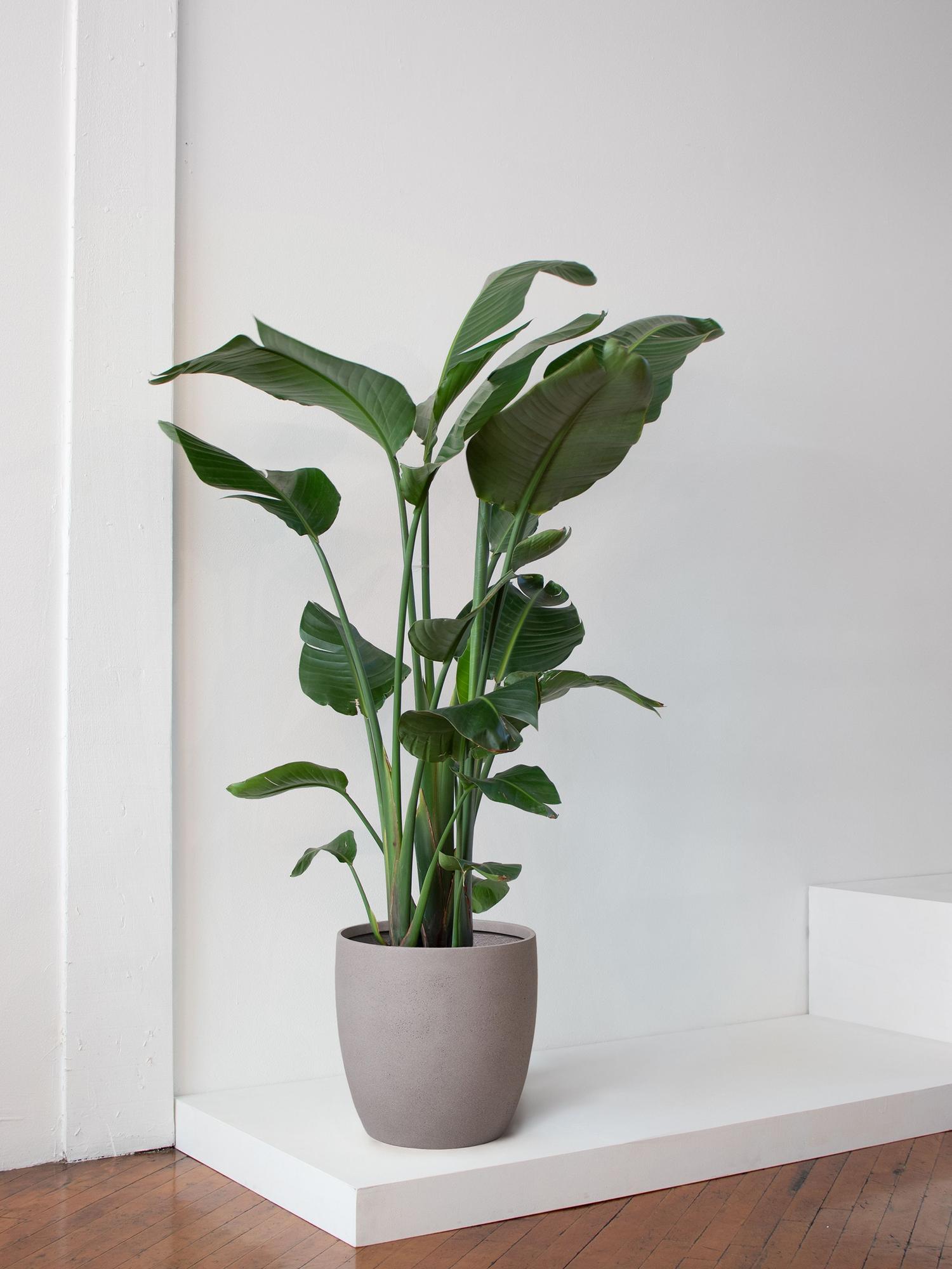 With long elegant leaves rising up from the bottom, the Bird of Paradise is a popular indoor plant for creating that instant jungle atmosphere. Imperfect like nature herself, this plant exhibits large foliage with natural splits and curls.