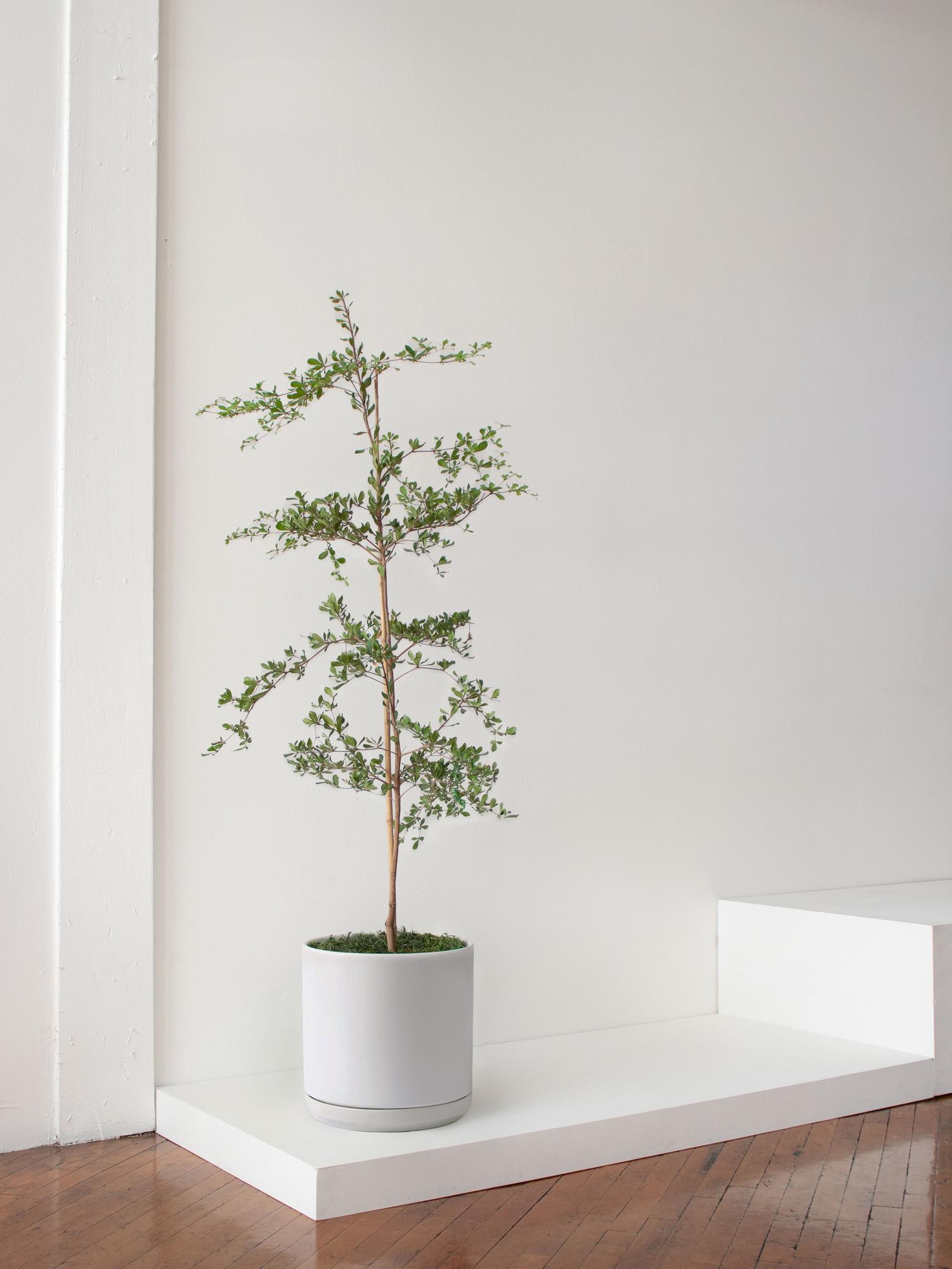 Coveted for its tall and architectural shape, this beauty is also known as the Shady Lady Tree. An Olive Tree that can be kept indoors or out in areas with bright direct sunlight, contrary to its name, it does not actually produce fruit. When young, the branches may appear bare, but will fill out over time with ample sunlight and proper care.