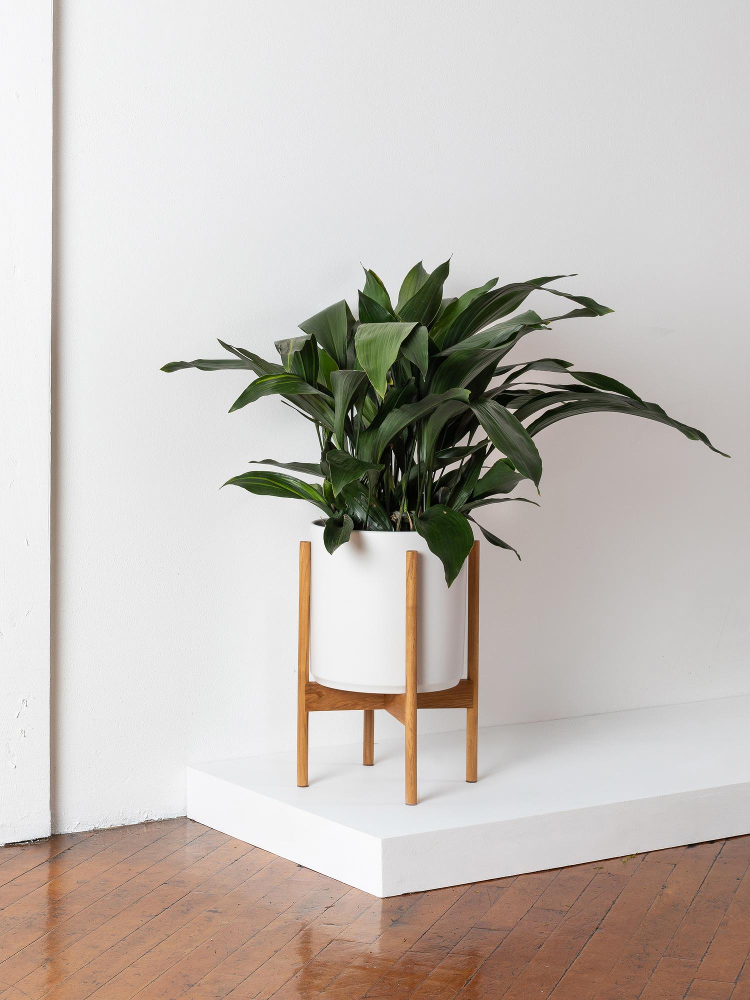 Our Mid-Century collection pairs high-fire ceramic pots with reclaimed wood stands, offering a nod to classic design with a focus on sustainability. Teak is used for light and dark stands, while black stands feature durable mahogany, underscoring our commitment to sophisticated indoor gardening and environmental responsibility. Designed and engineered with form and function in mind, these pieces are perfectly sized, water sealed, surface safe, and made from non-toxic materials.