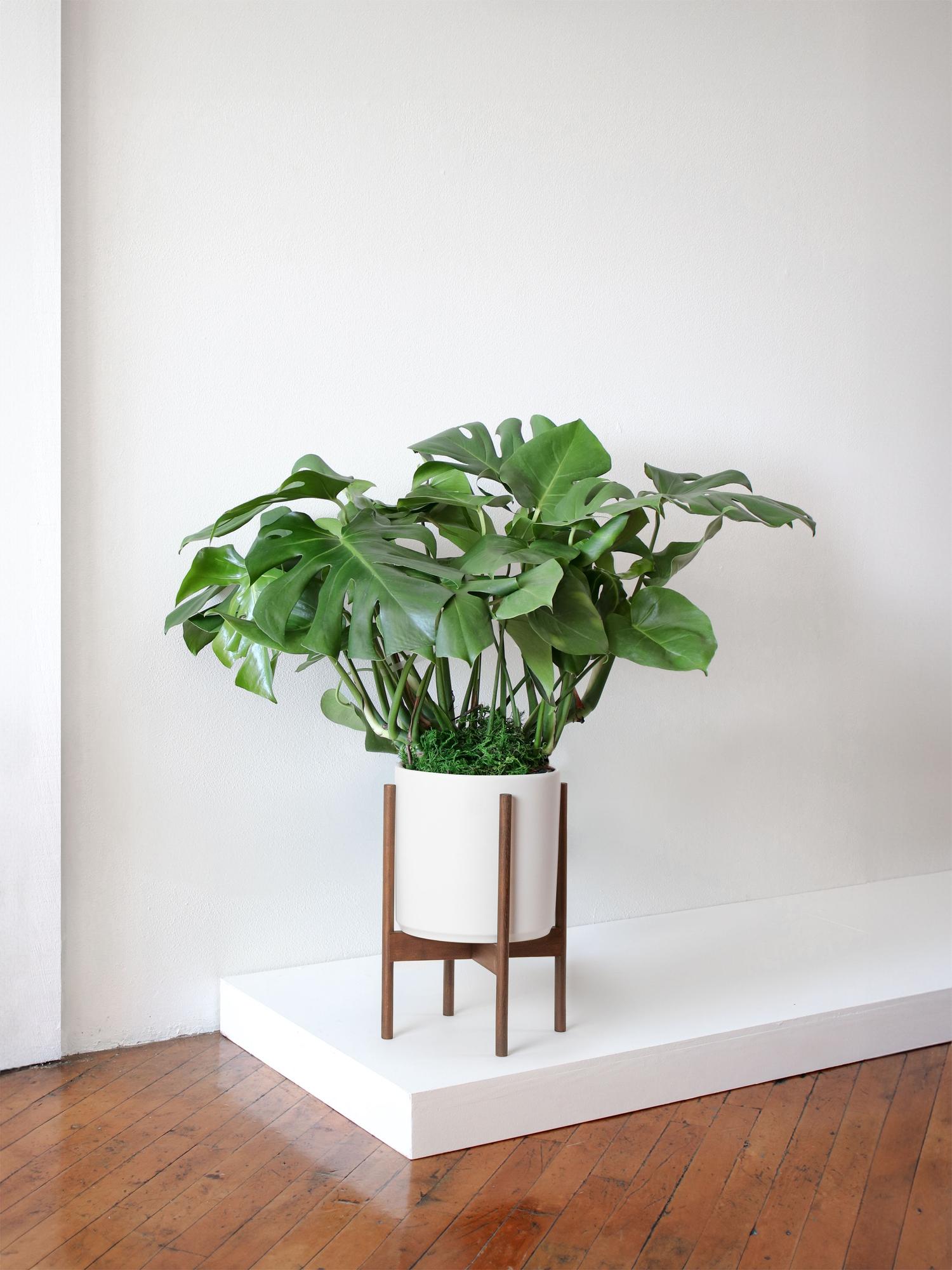 Our Mid-Century collection pairs high-fire ceramic pots with reclaimed wood stands, offering a nod to classic design with a focus on sustainability. Teak is used for light and dark stands, while black stands feature durable mahogany, underscoring our commitment to sophisticated indoor gardening and environmental responsibility. Designed and engineered with form and function in mind, these pieces are perfectly sized, water sealed, surface safe, and made from non-toxic materials.