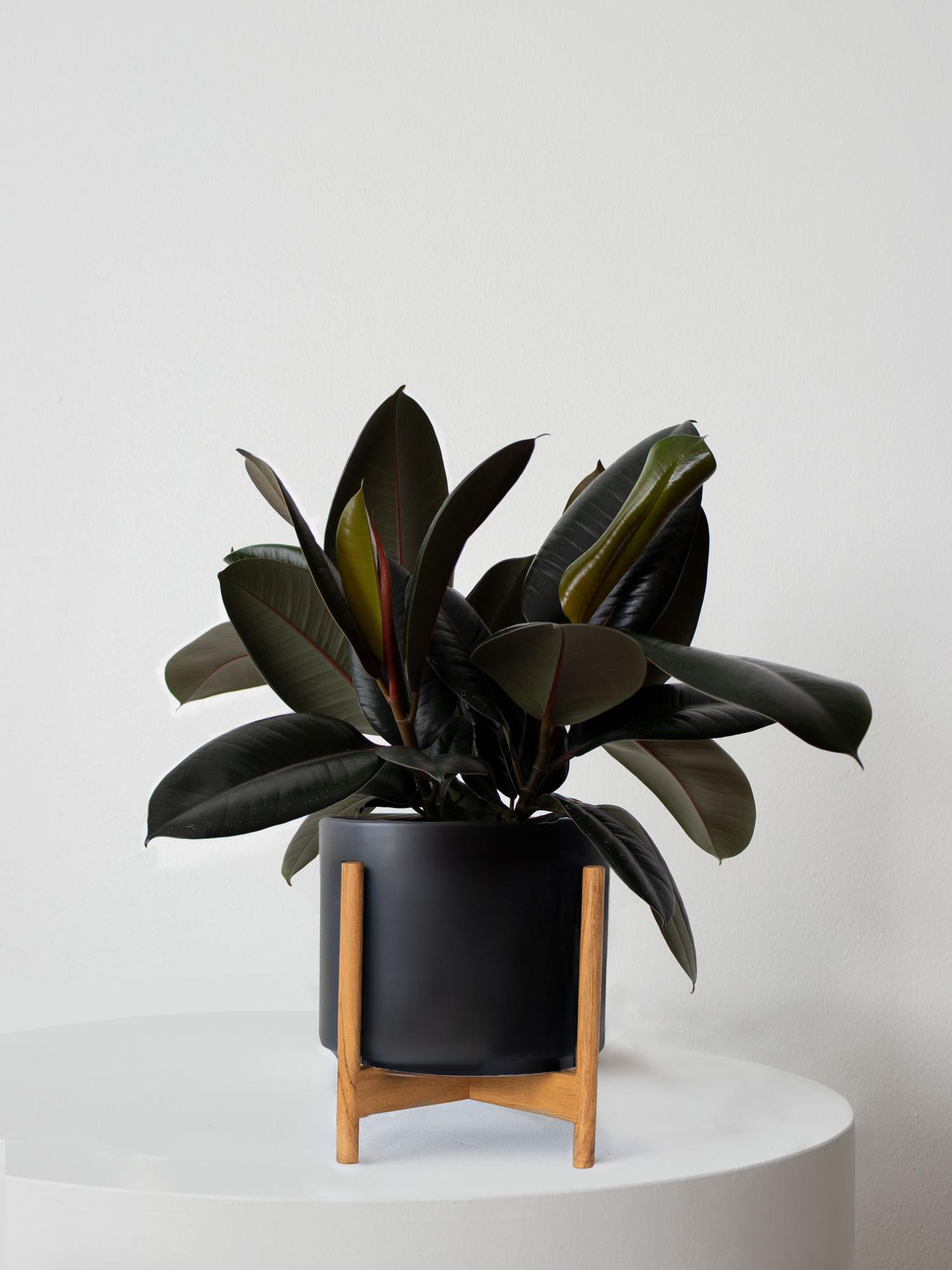 The burgundy-colored leaves of the Rubber Plant makes it a unique option for any indoor space. This plant grows quickly in ideal conditions and is easy to care for, with new leaves frequently sprouting from crimson red casings.